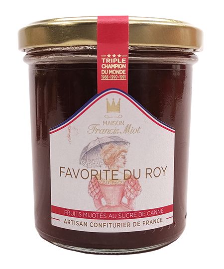 Le parfum que vous propose la Favorite du Roy est un doux mélange d'abricot, de pêche et de jus de framboise. Un véritable délice pour vos papilles. Nous vous la conseillons tartinée sur notre délicieux quatre quart pur beurre.